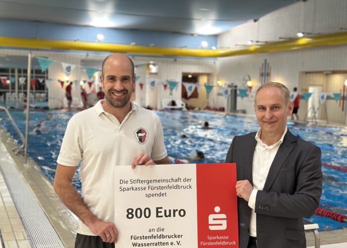 Die Stiftergemeinschaft der Sparkasse freut sich, die Arbeit der Fürstenfeldbrucker Wasserratten mit einer Spende von 800 Euro unterstützen zu können.